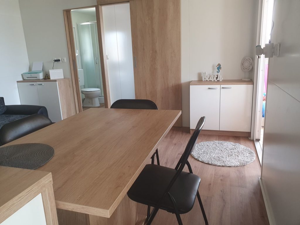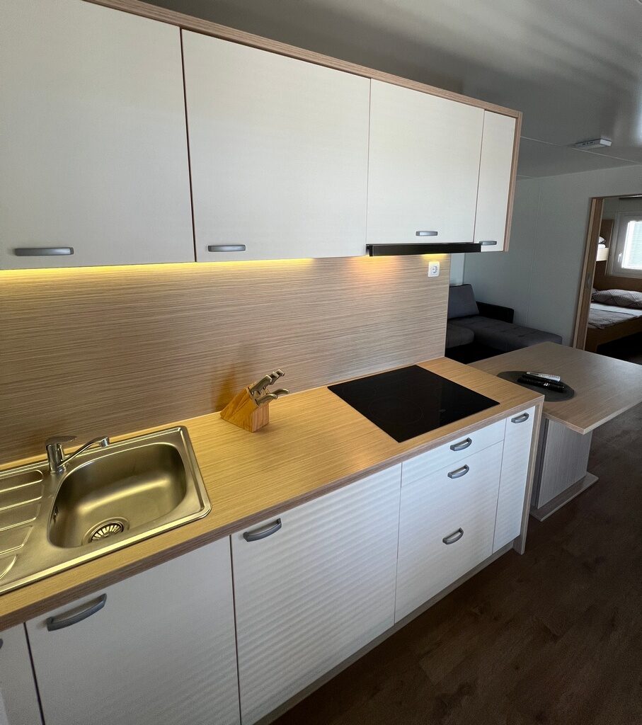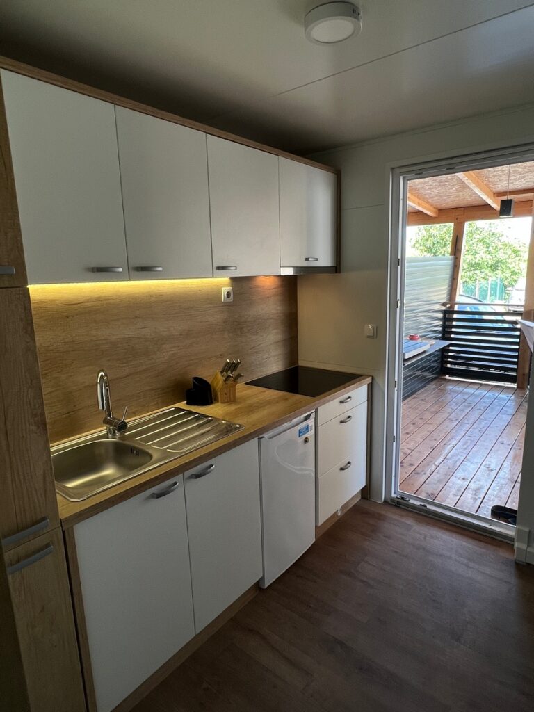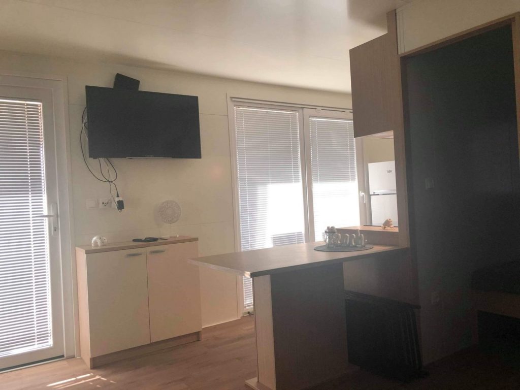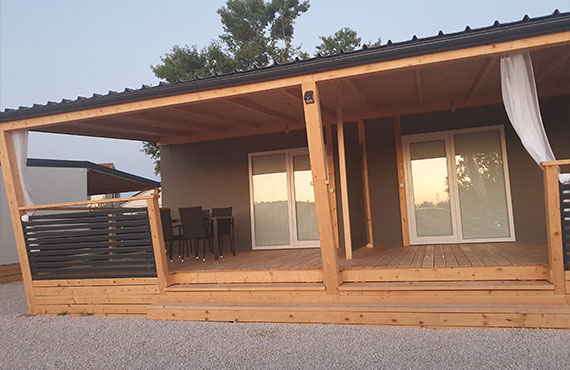 V manjšem privat kampu ponujamo štiri mobilne hiške dveh različnih velikosti. MB4 je mobilna hiška primerna za do 4 goste, medtem ko je MB7 mobilna hiška primerna za do 7 gostov. Vsem štirim hiškam pripada tudi velika terasa v velikosti 3,5 x 8m. Hiška ima vso opremo za prijeten dopust. V hiški je klima, wifi, tv ter brezplačen parking pred njo.