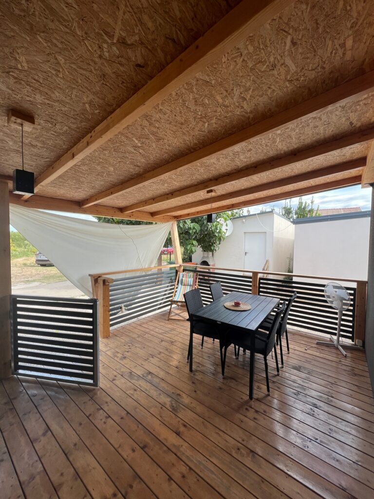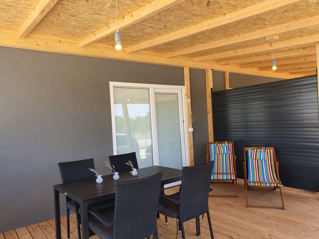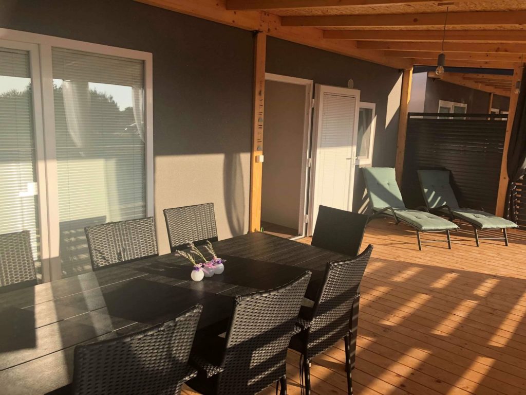 Hiški pripada tudi velika terasa velikosti 3,5x 4,6m in ima vso opremo za prijeten dopust.