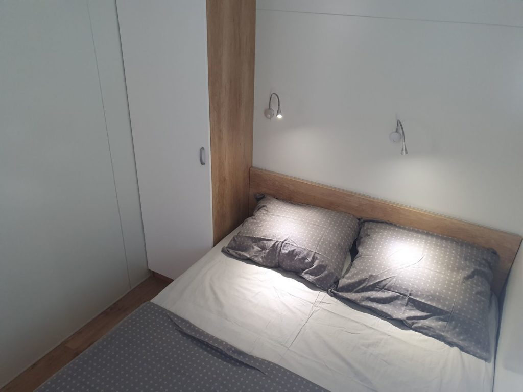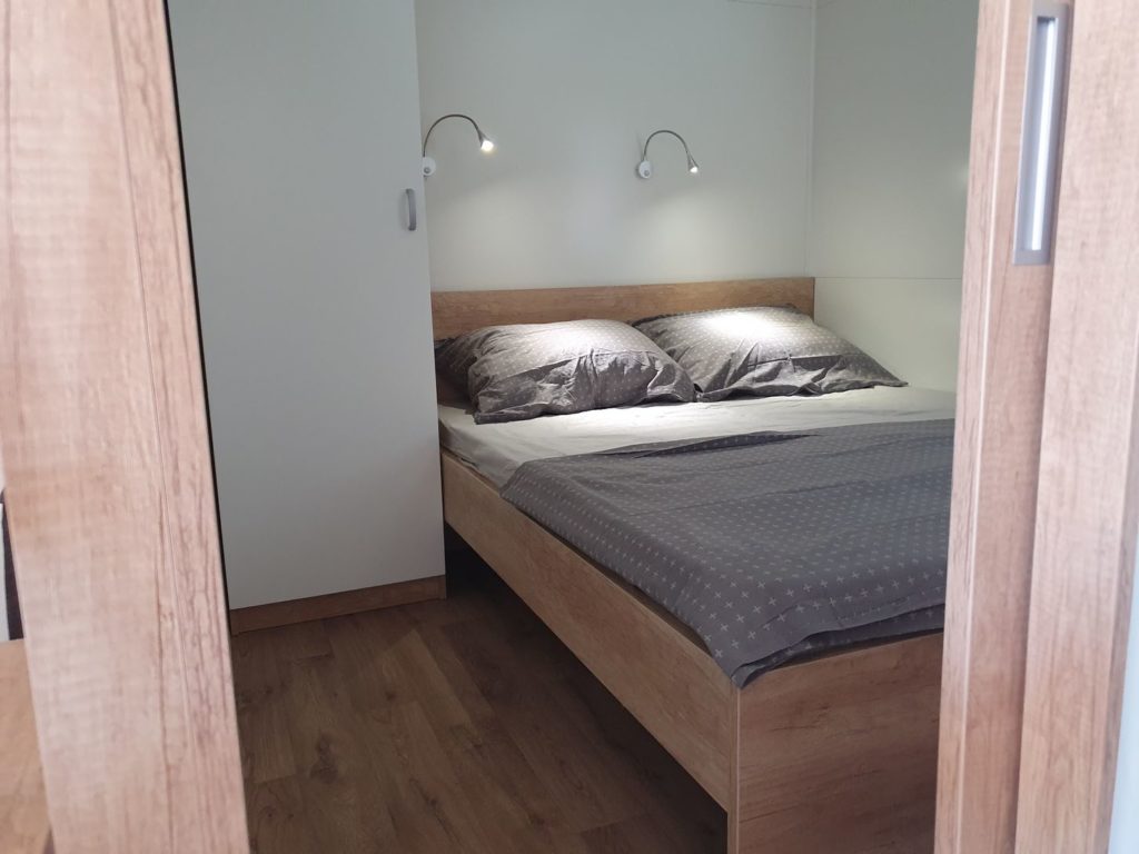 2x MB4 je mobilna hiška primerna za do 4 goste. V hiški je spalnica z zakonsko posteljo 160×200, kopalnica z wc-jem, kuhinja-dnevna in jedilnica pa je v enem delu. V dnevnem delu je še sedežna z raztegljivim ležiščem 140×200.